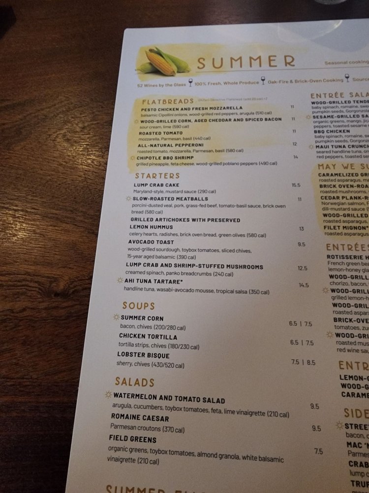 Highlights include the renowned flatbreads, offering delightful variations, and exquisite seafood selections like their Maryland-style crab cakes and perfectly grilled lobster. Customers rave about the wood-grilled meats, with the lamb loin and steak being particularly noteworthy for their tender textures and rich flavors.