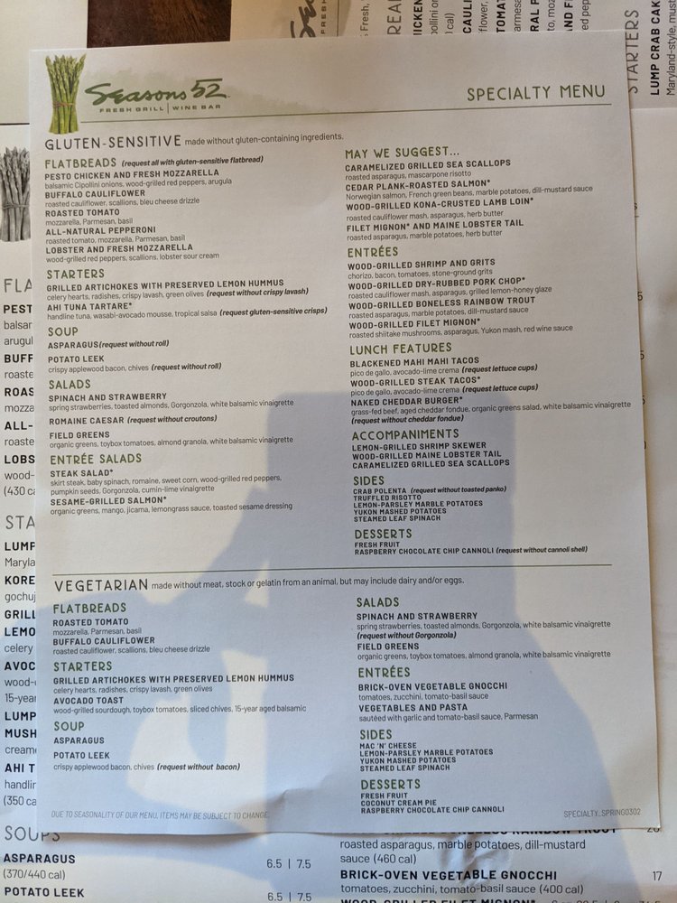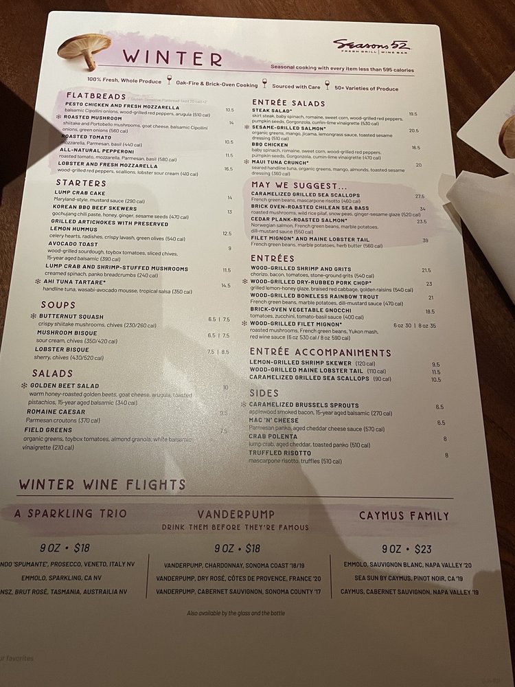 Welcome to Seasons 52 King of Prussia, where culinary creativity meets a health-conscious approach. Situated in the vibrant King of Prussia area, this restaurant emphasizes seasonally inspired dishes crafted with fresh ingredients and a commitment to healthy dining. All entrees are under 700 calories, ensuring you can indulge without guilt.